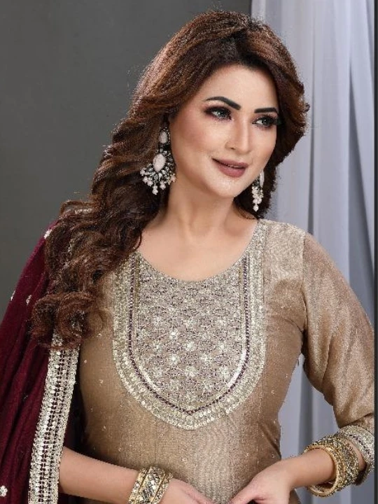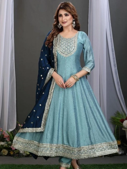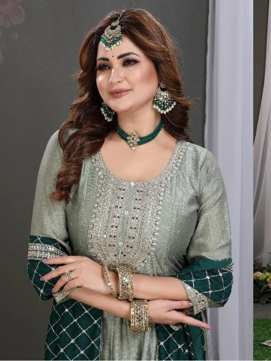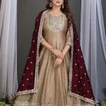Enhance your wardrobe with this Royal Charm Suit, a beautifully crafted Anarkali-style ensemble that exudes grace and sophistication. Made from premium georgette fabric, this outfit features intricate heavy embroidery on the neckline, borders, and sleeves, adding a luxurious touch. The contrasting maroon dupatta is adorned with delicate motifs and an embroidered border, elevating the entire look. The suit is designed for a comfortable yet regal fit, making it an ideal choice for festive occasions, weddings, and parties. Pair it with statement jewelry and heels to complete the elegant look.
