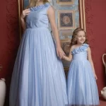 Celebrate the special bond between mother and daughter with this elegant matching gown set. Designed for timeless beauty, this outfit is perfect for special occasions, including weddings, parties, and formal gatherings.